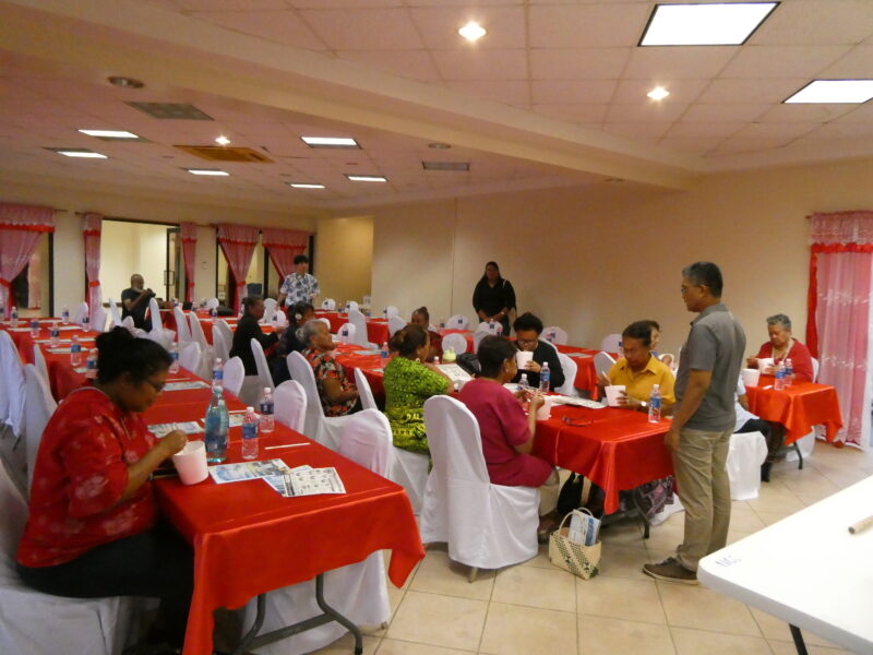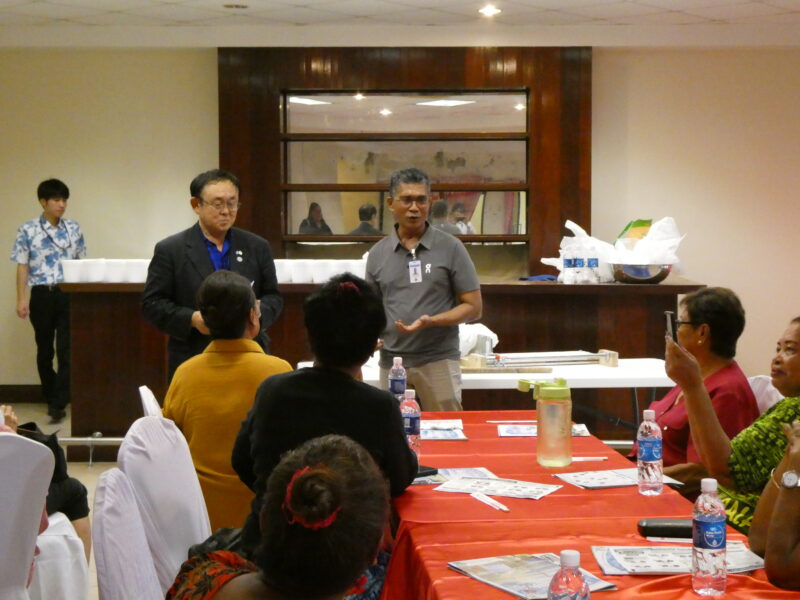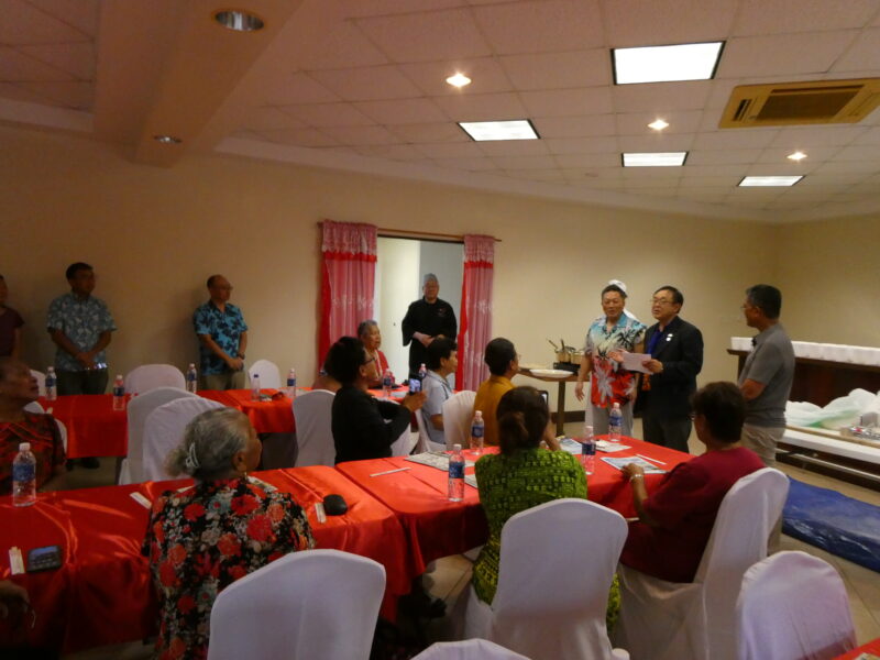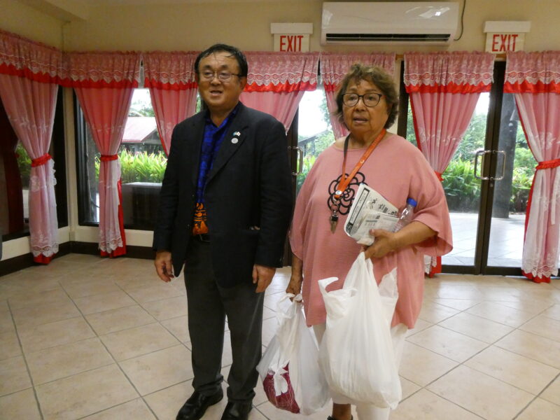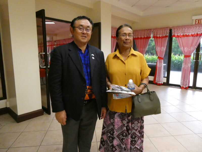 サンティ・アサヌマ郵政長官がパラオ語へ通訳をしてくださいました。
