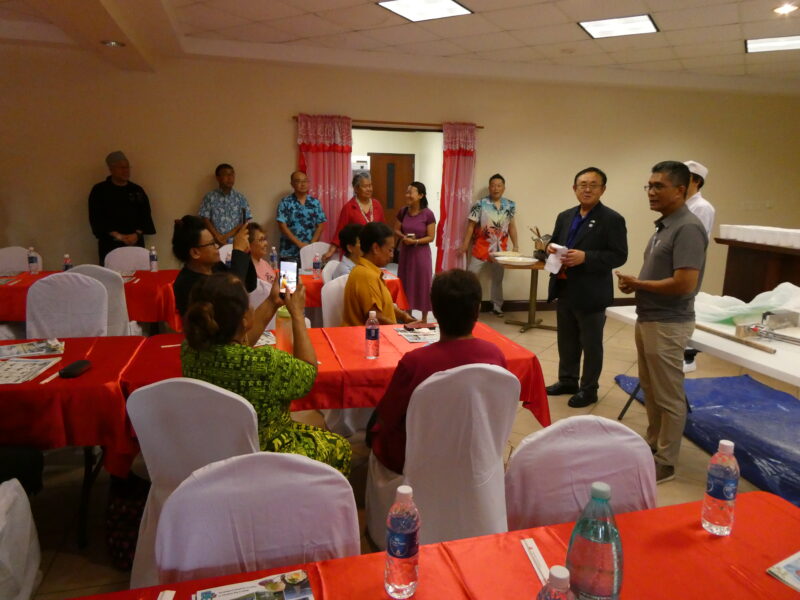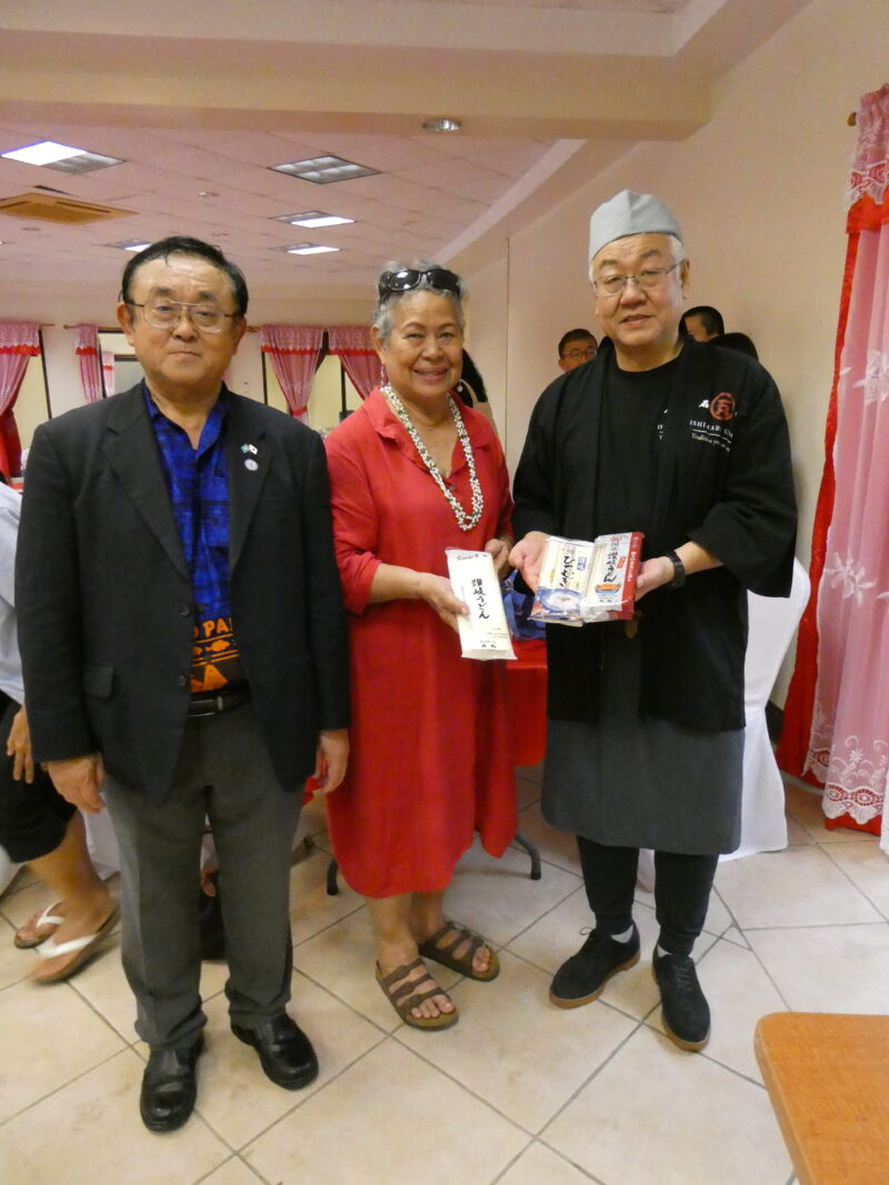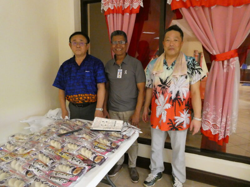 田原副部長はコロールのダウンタウンにある飲食店のオーナーをされているゲストに石丸製麺の乾麺を贈呈されました