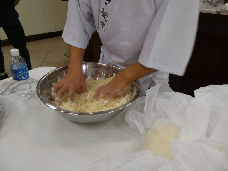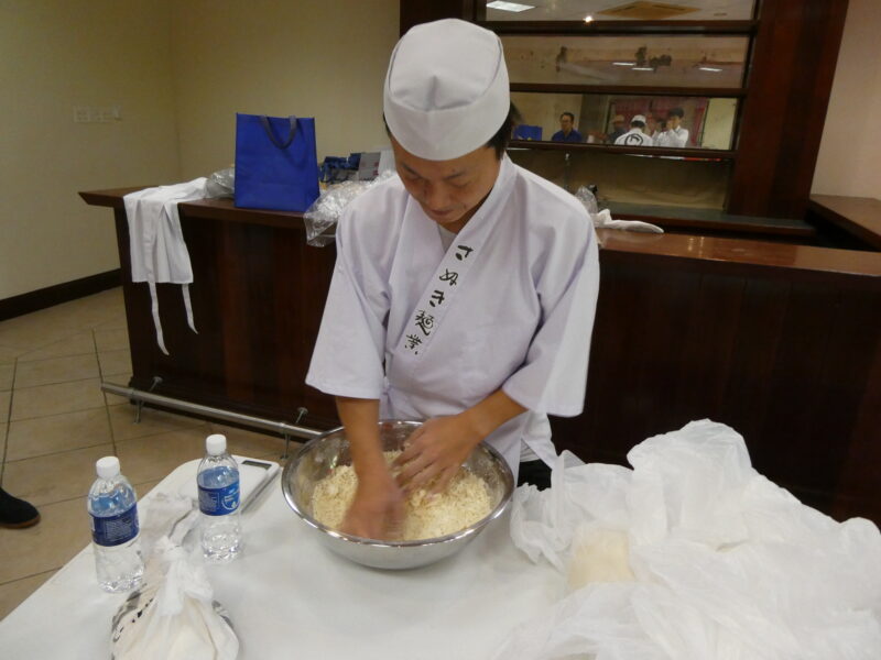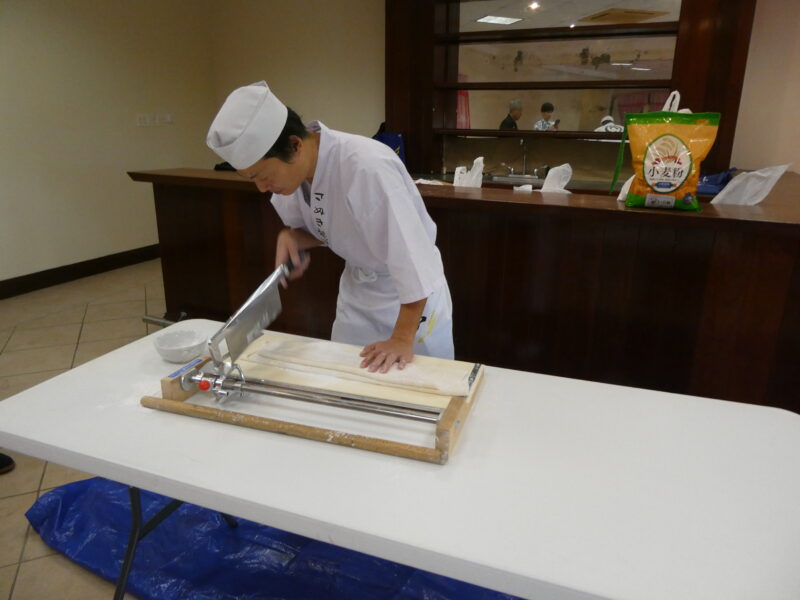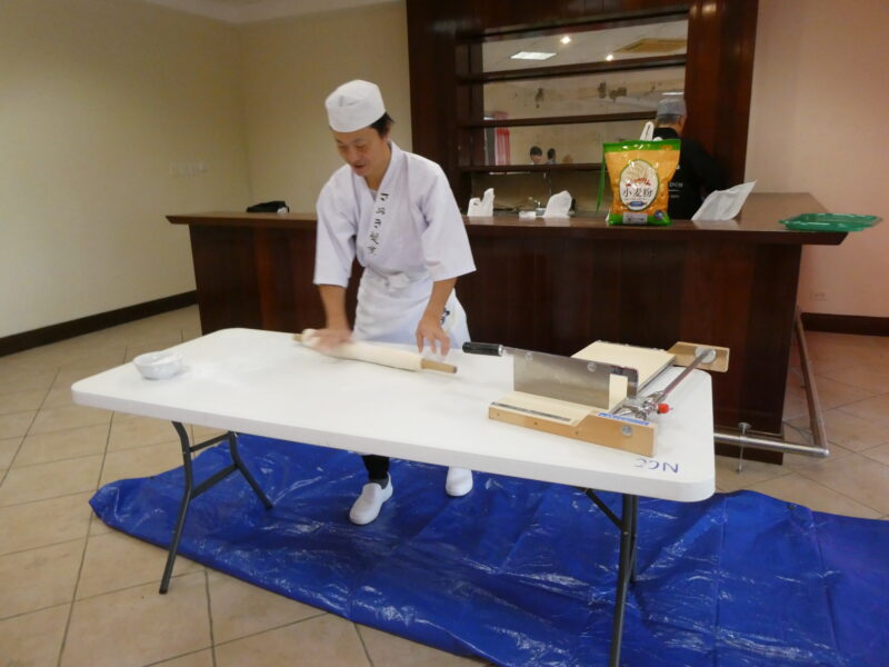 早めにいらっしゃったご招待客に本場のうどん職人(本場さぬき麺業の大久保様)のうどんづくりの実演を見ていただきました。