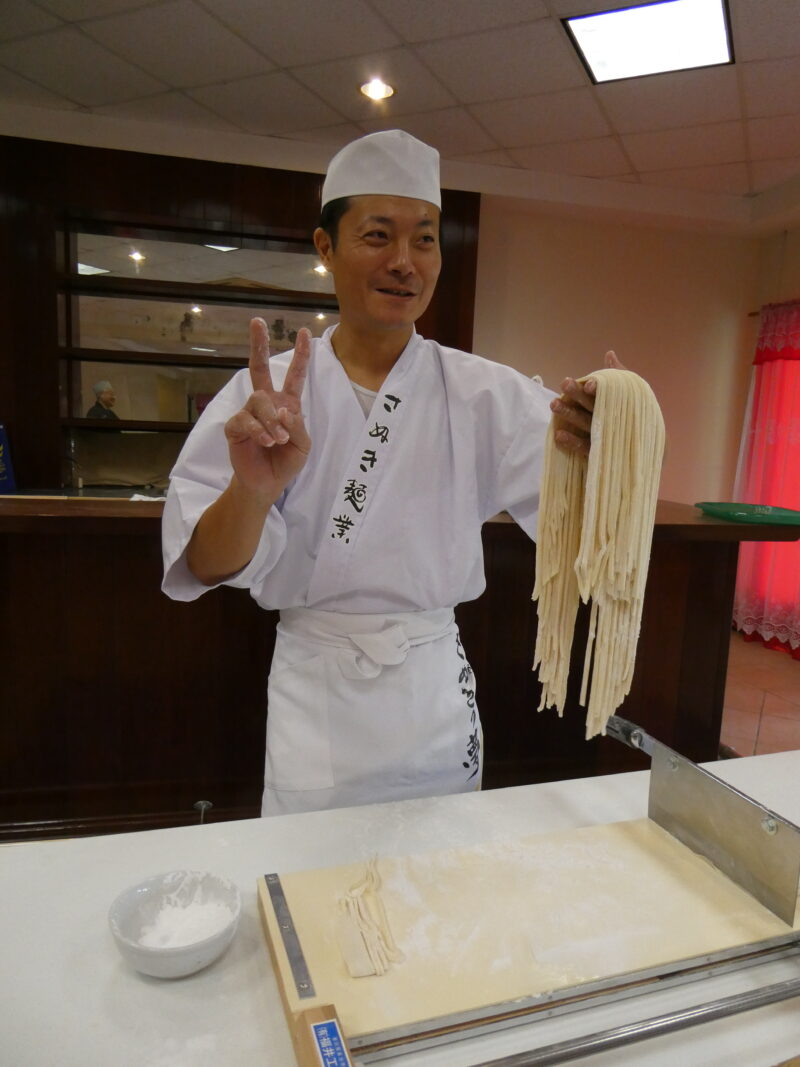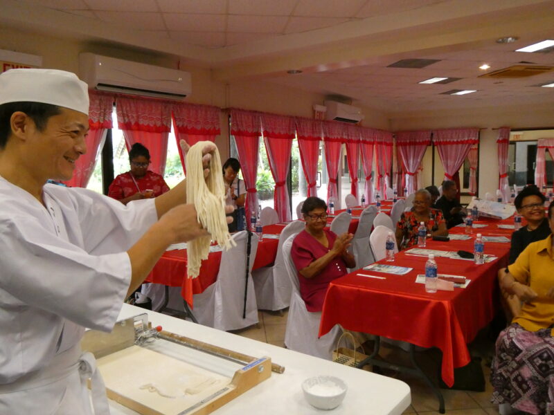 12月19日、ガラマヨン文化センターにてさぬきうどん実演試食会を行いました。