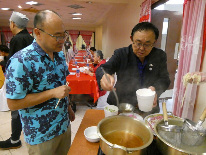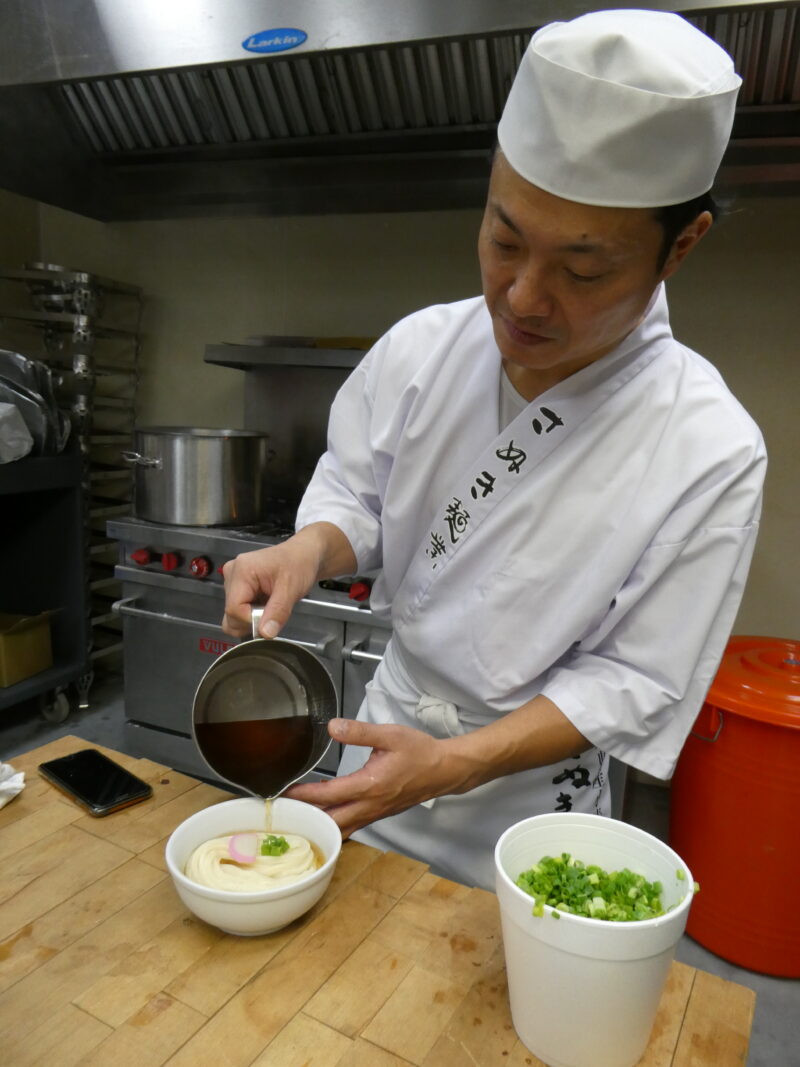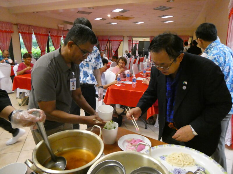 サンティ・アサヌマ郵政長官はご自身でうどんを配膳されました