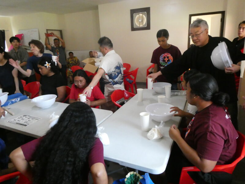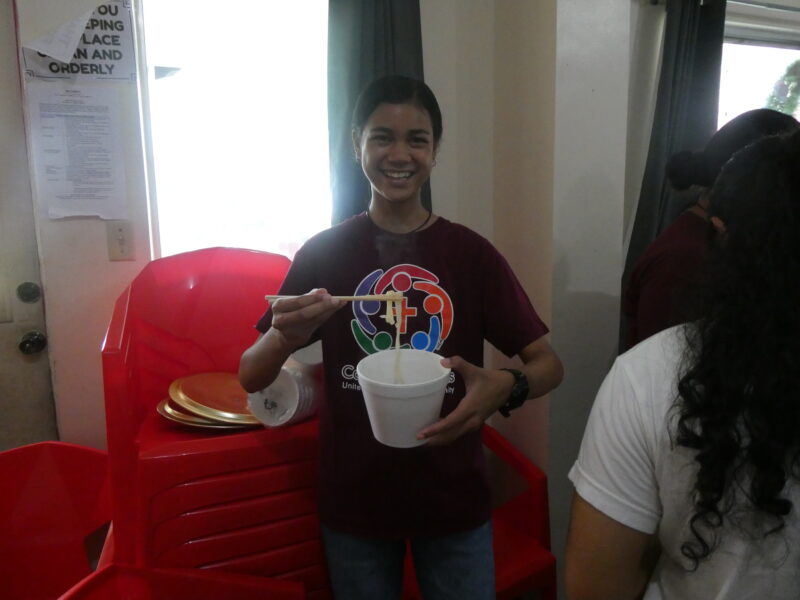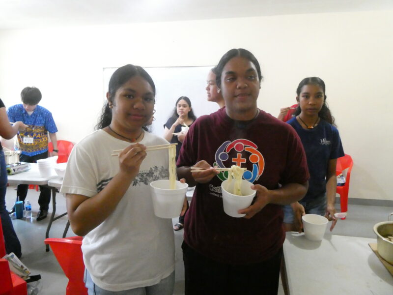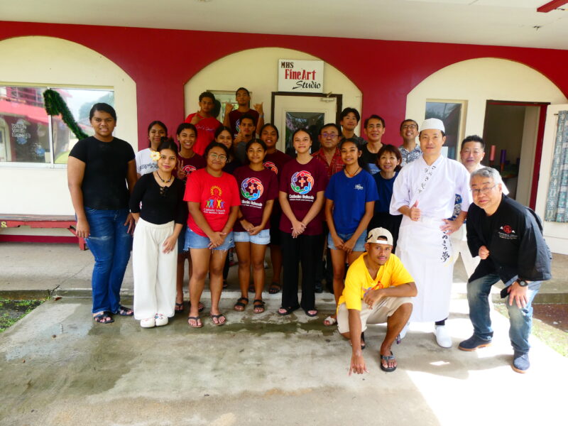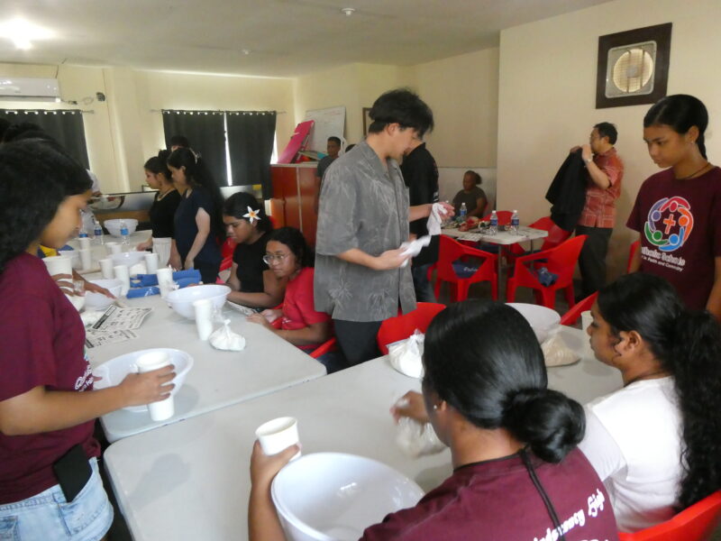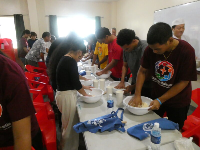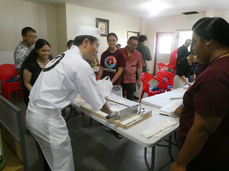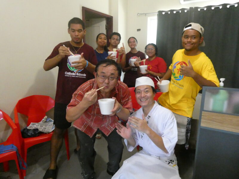 12月20日、ミゼンティ高校にてうどん体験会を行いました。ミゼンティ高校では前日まで学期末のテストが行われており、この日はクリスマス休暇の初日にあたります。サンティ・アサヌマ郵政長官がミゼンティ高校で授業を担当されていることから、ミゼンティ高校でのうどん体験会の企画が実現しました。