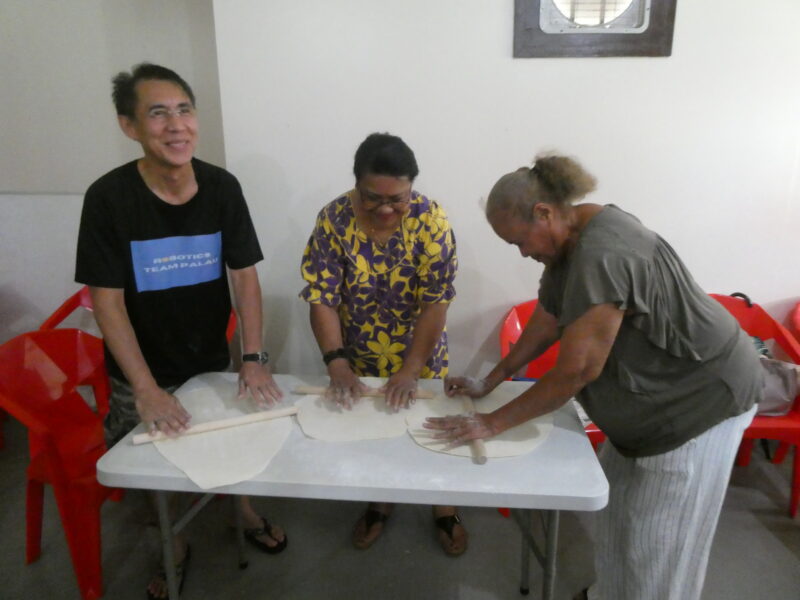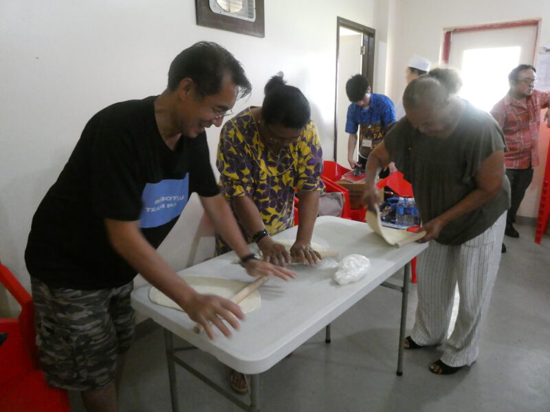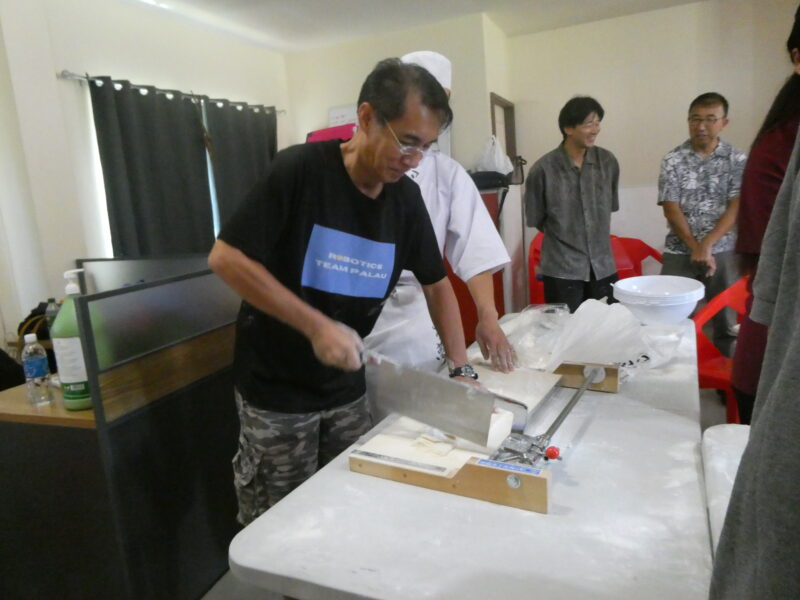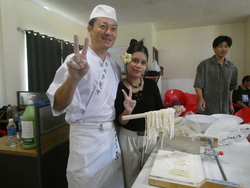 ミゼンティ高校の先生方にもうどん作りに参加していただきました