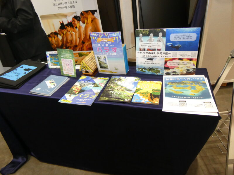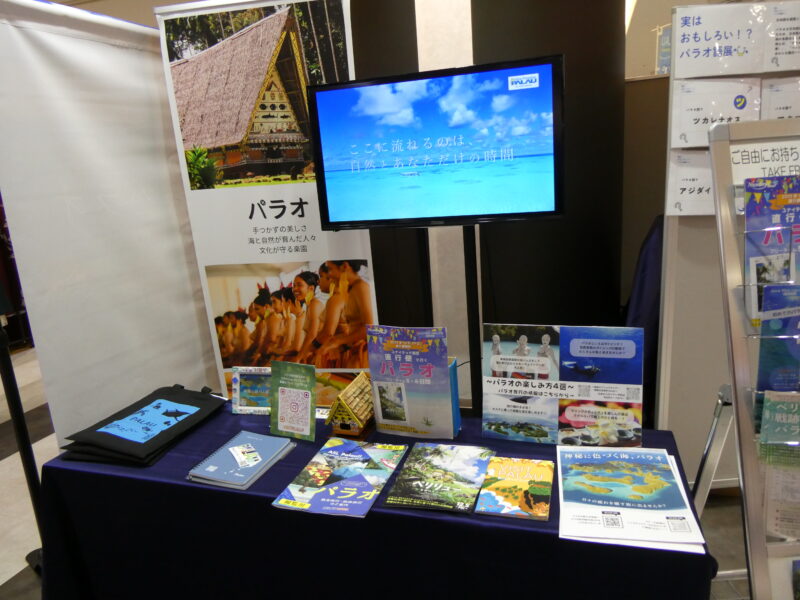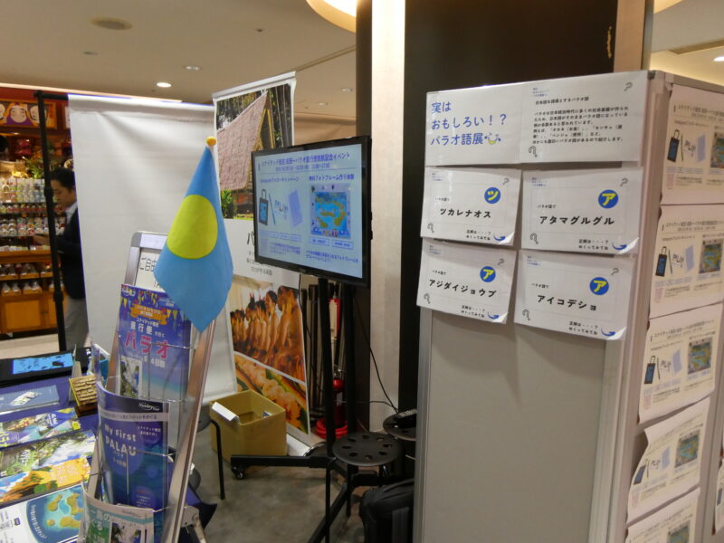 成田空港に到着すると、日本ーパラオ直行便の就航を記念してパラオのPRブースが設けられていました。パラオの世界遺産の紹介のほか「アジダイジョウブ」、「ツカレナオス」など日本語由来ではあるものの現地で独特な意味を持つことになった表現なども紹介されていました。