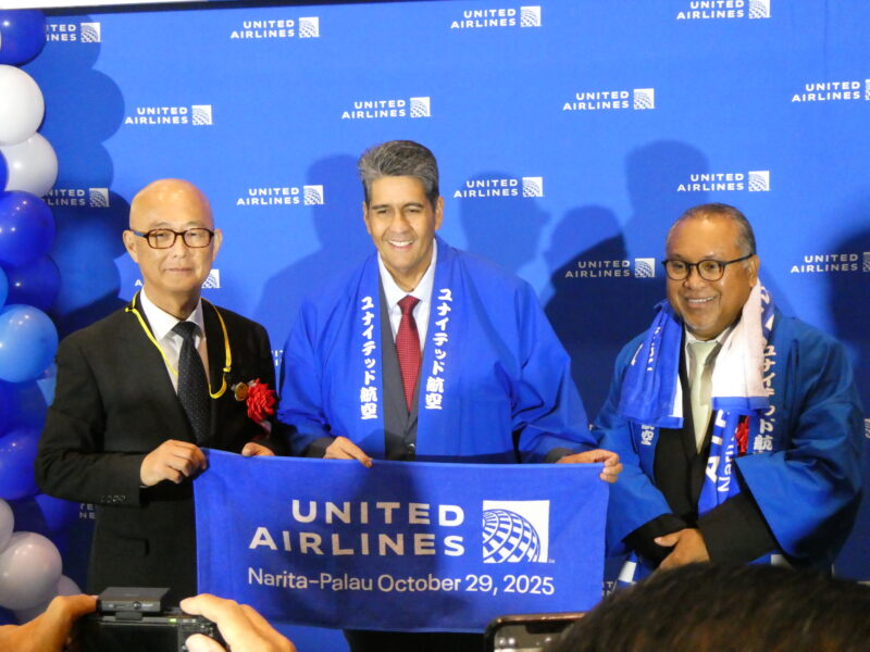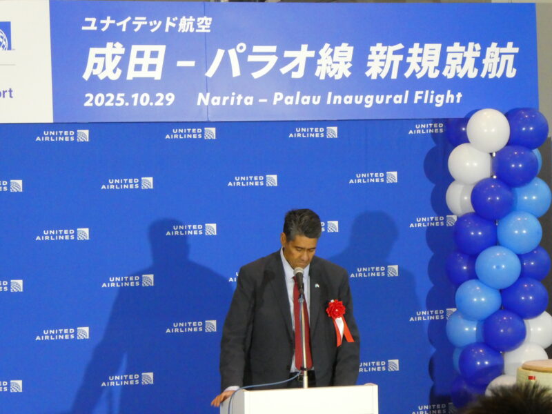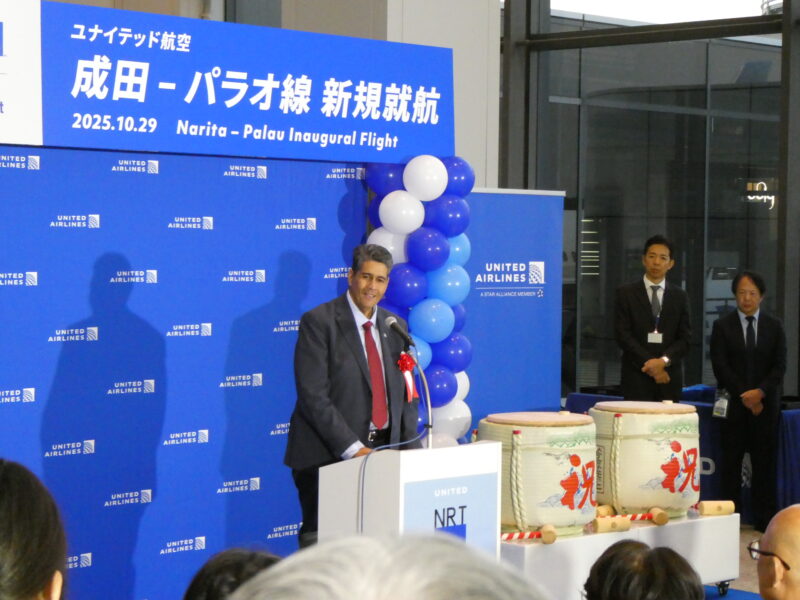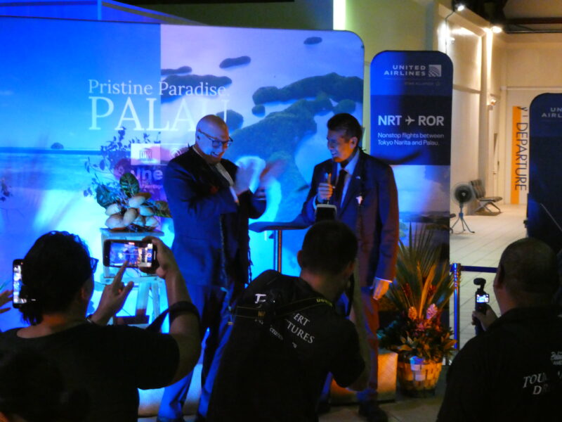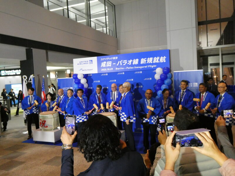 10月29日、かねてからの悲願でありましたパラオー日本間の直行便がユナイテッド航空より就航しました。それにあわせて岩田直行 名誉総領事も直行第一便に搭乗いたしました。成田空港での搭乗からパラオ到着までの様子をお届けします。
