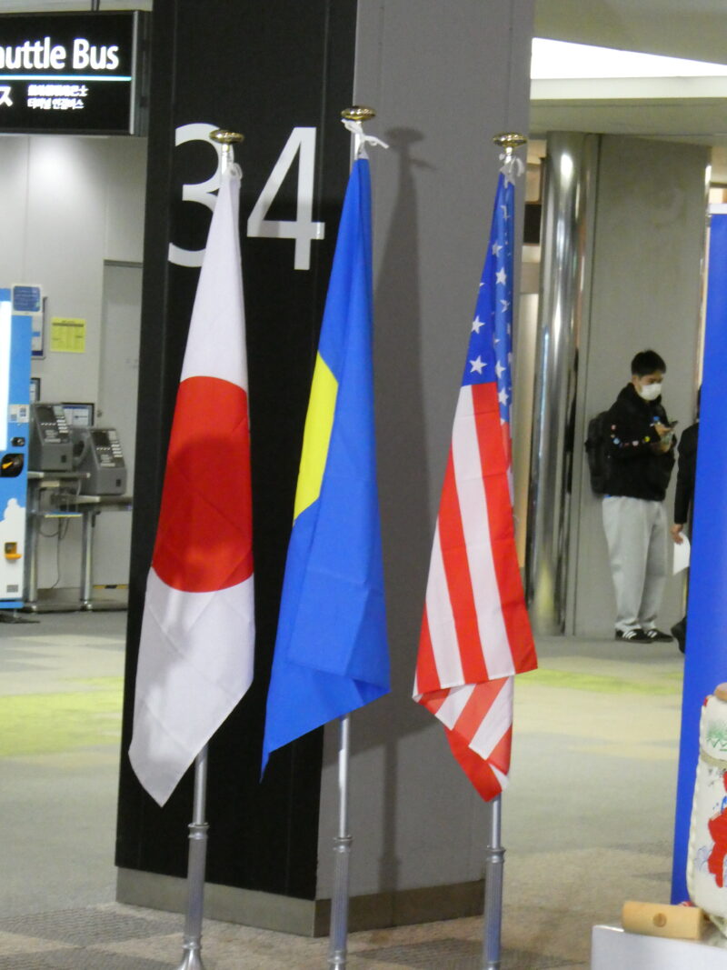 日本・パラオ・アメリカの3カ国の国旗が並んでいました