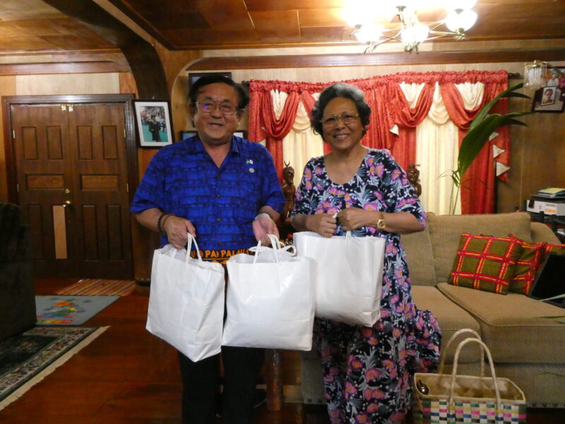 昼食後、総領事はコロール州の伝統的女性大首長のもとを訪れ、日本からの御土産を贈呈しました。